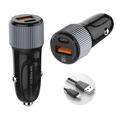 Auto punjac LDNIO C510Q PD/QC3.0 38W sa Type C na iPhone lightning kablom