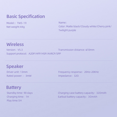 Slusalice Bluetooth Buds+ ljubicaste (MS)