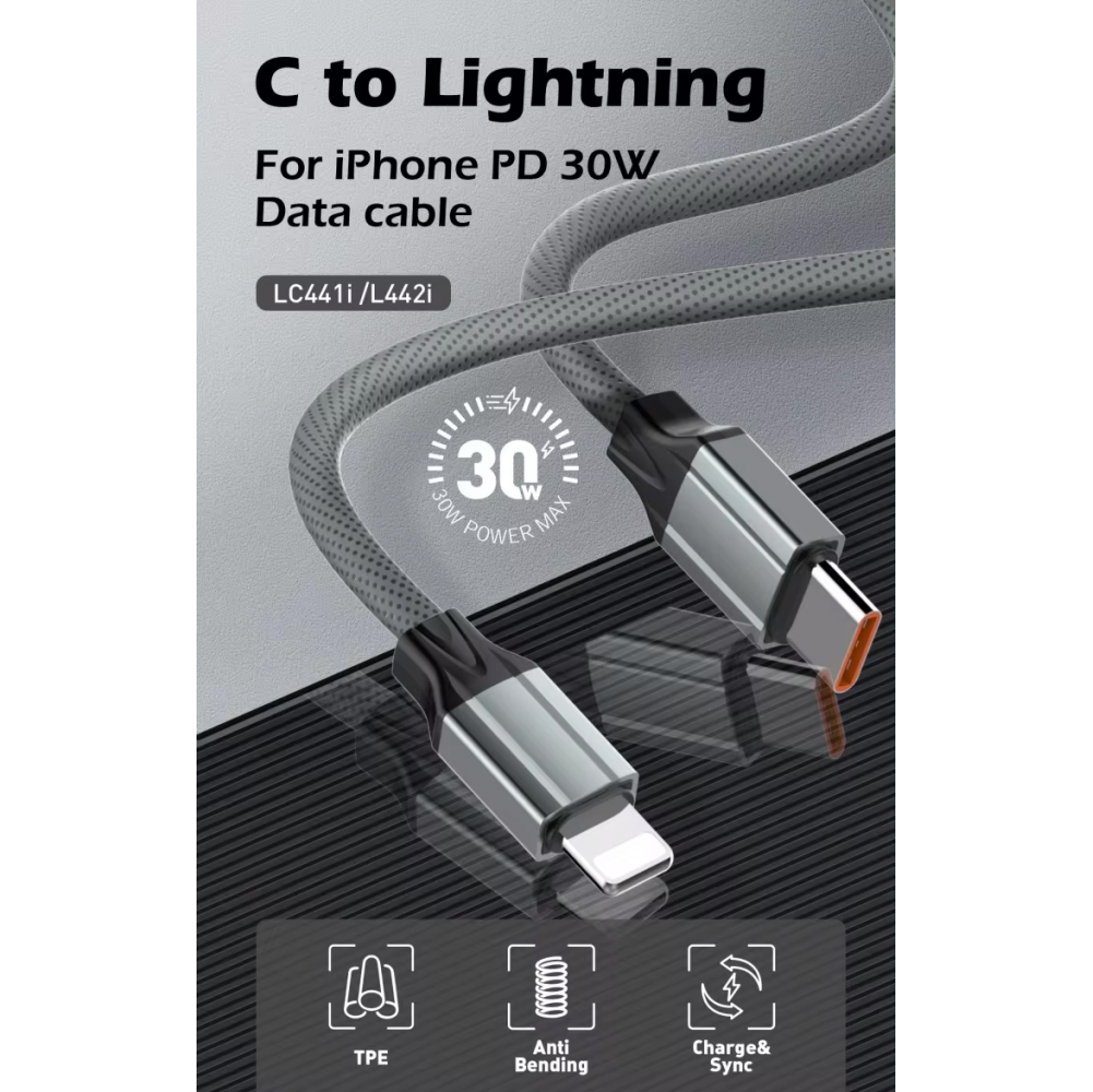 Data kabl LDNIO LC441I 30w, Type C na iPhone lightning sivi 1m