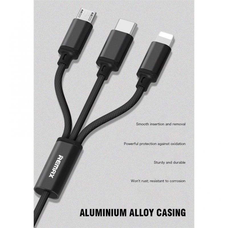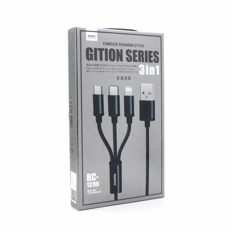 Data kabl REMAX Gition RC-131 3u1 - iPhone Lightning/Micro USB/Type C crni 1m