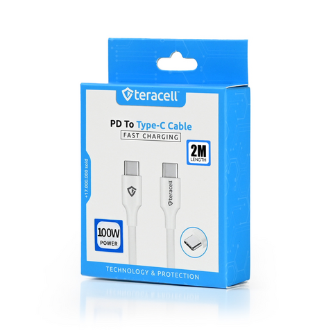 Data kabl Teracell Plus 100W PD Type C na Type C beli 2m