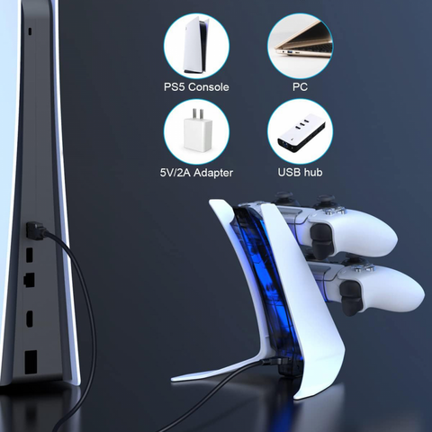 Dobe TP5-0557 stalak-punjac - dva gamepada sa osvetljenjem PS5 beli