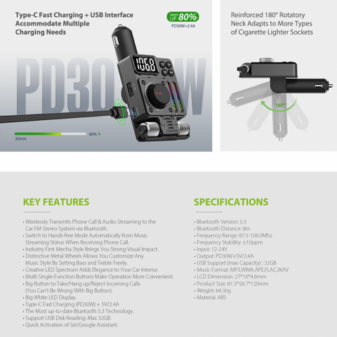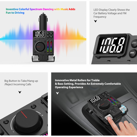 FM Transmiter MT01, Treble and Bass control, PD 30W, USB 12W, BT 5.3, RGB