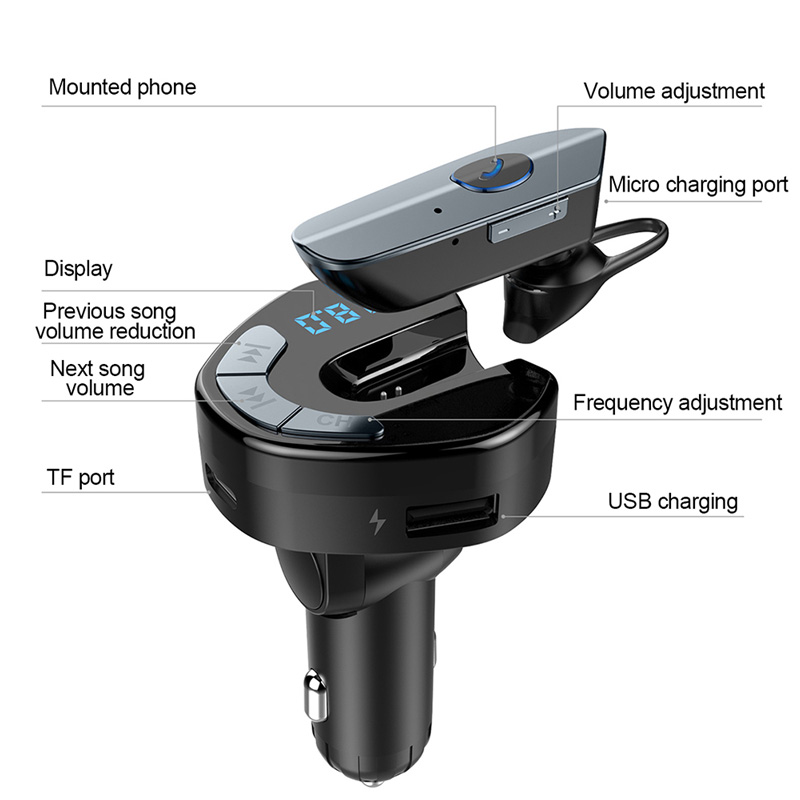 FM transmiter V8 USB TF Bluetooth 5.0 12-24V Handsfree slušalica crni