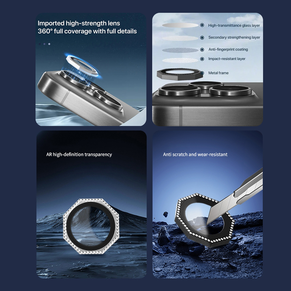 Folija - zastitu kamere OCTAGON DIAMOND za iPhone 16 (6.1)/16 Plus (6.7) crna (MS)