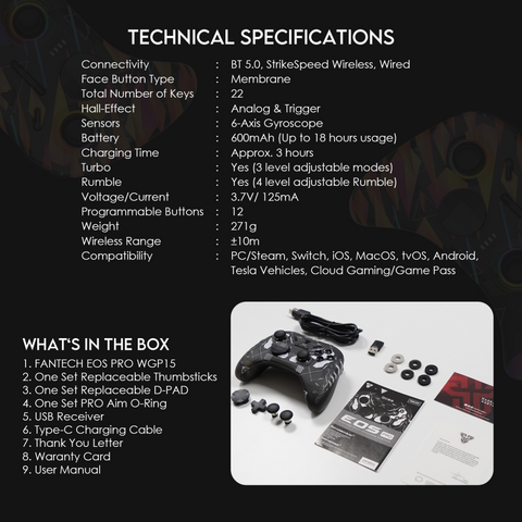 Joypad wireless Fantech WGP15 EOS PRO multiplatform RGB crni