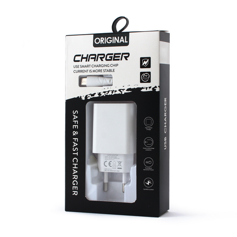 Kucni punjac 2.1A sa USB na micro USB kablom CE beli