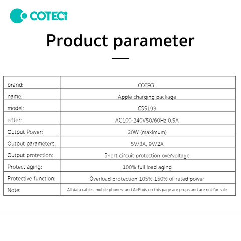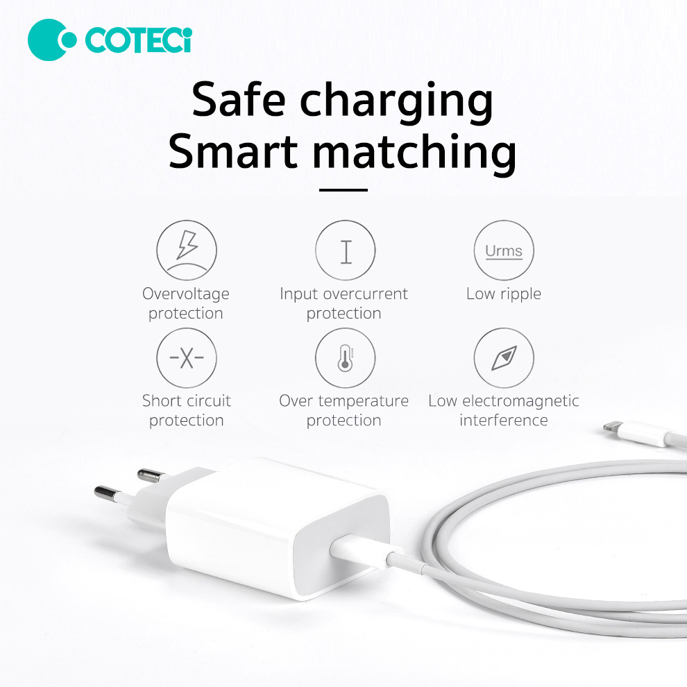 Kucni punjac Coteci CS5193 20W sa PD na lightning kablom beli