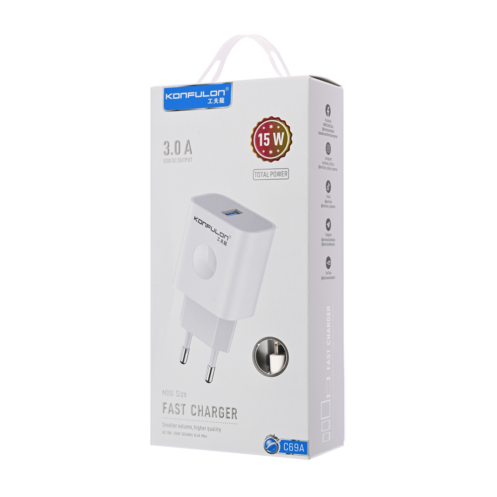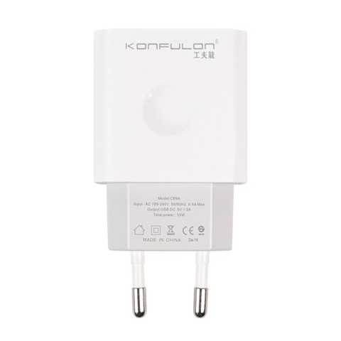 Kucni punjac KONFULON C69A+DC05 QC 15W, USB na iPhone lightning beli 1m