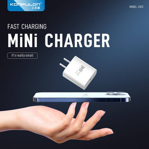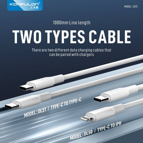 Kucni punjac KONFULON C87c + DL50, 30W, sa PD kablom Type C na iPhone lightning beli