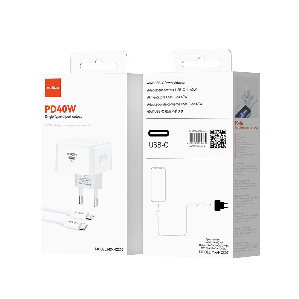 Kucni punjac MOXOM MX-HC307 40W Type C na Lightning beli (MS)