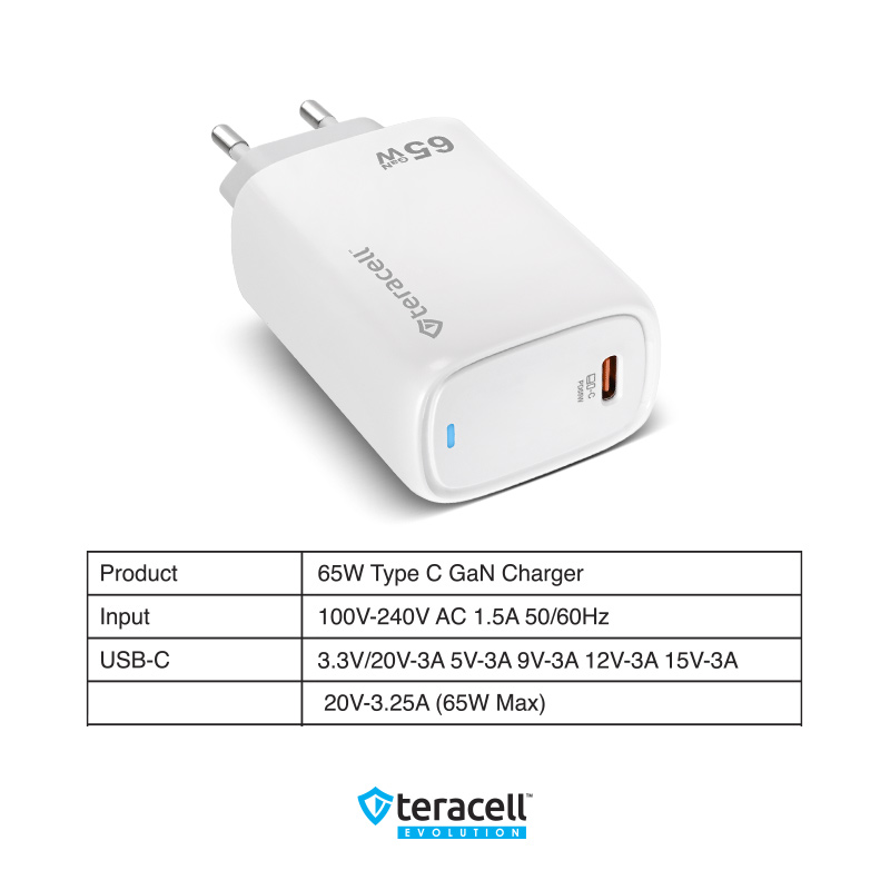 Kucni punjac Teracell Evolution TC-20, GAN, PD Fast charging 65W beli CE