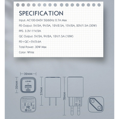 Kucni punjac LDNIO A2522C QC3.0, PD, PPS, LED Display, 30W sa Type C na iPhone lightning kablom beli