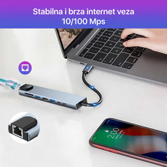 Adapter Type C na 3 USB 2.0 + RJ45 (100Mb) JWD-T4.