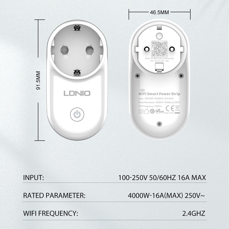 Pametna kucna uticnica LDNIO SEW1058 nocna LED lampa bela