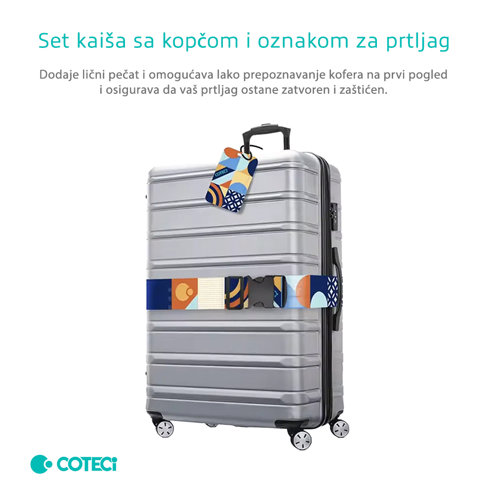 Set Coteci kaiša sa kopčom i oznakom za prtljag je savršen saputnik za svakog ko želi da obezbedi svoj kofer sa stilom.