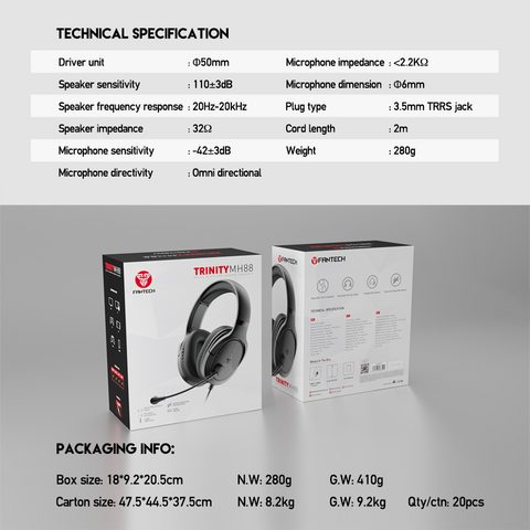 Slusalice Gaming Fantech MH88 Trinity crne