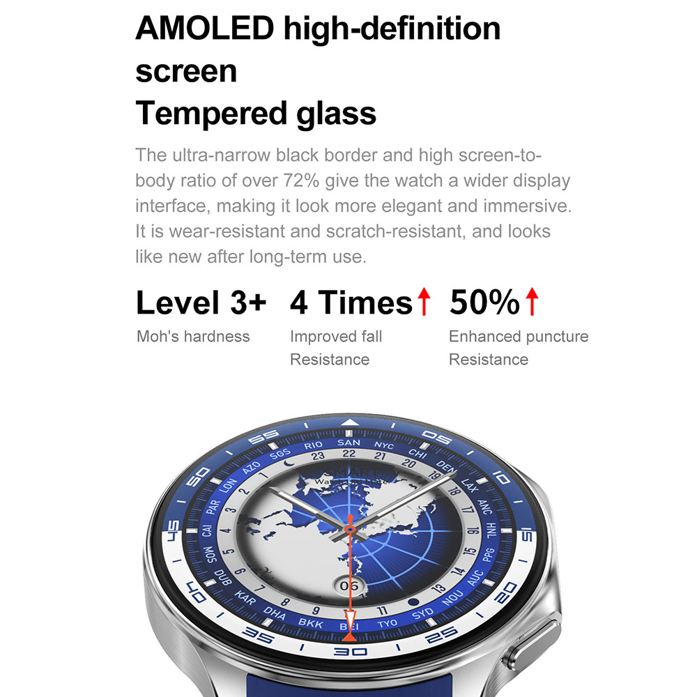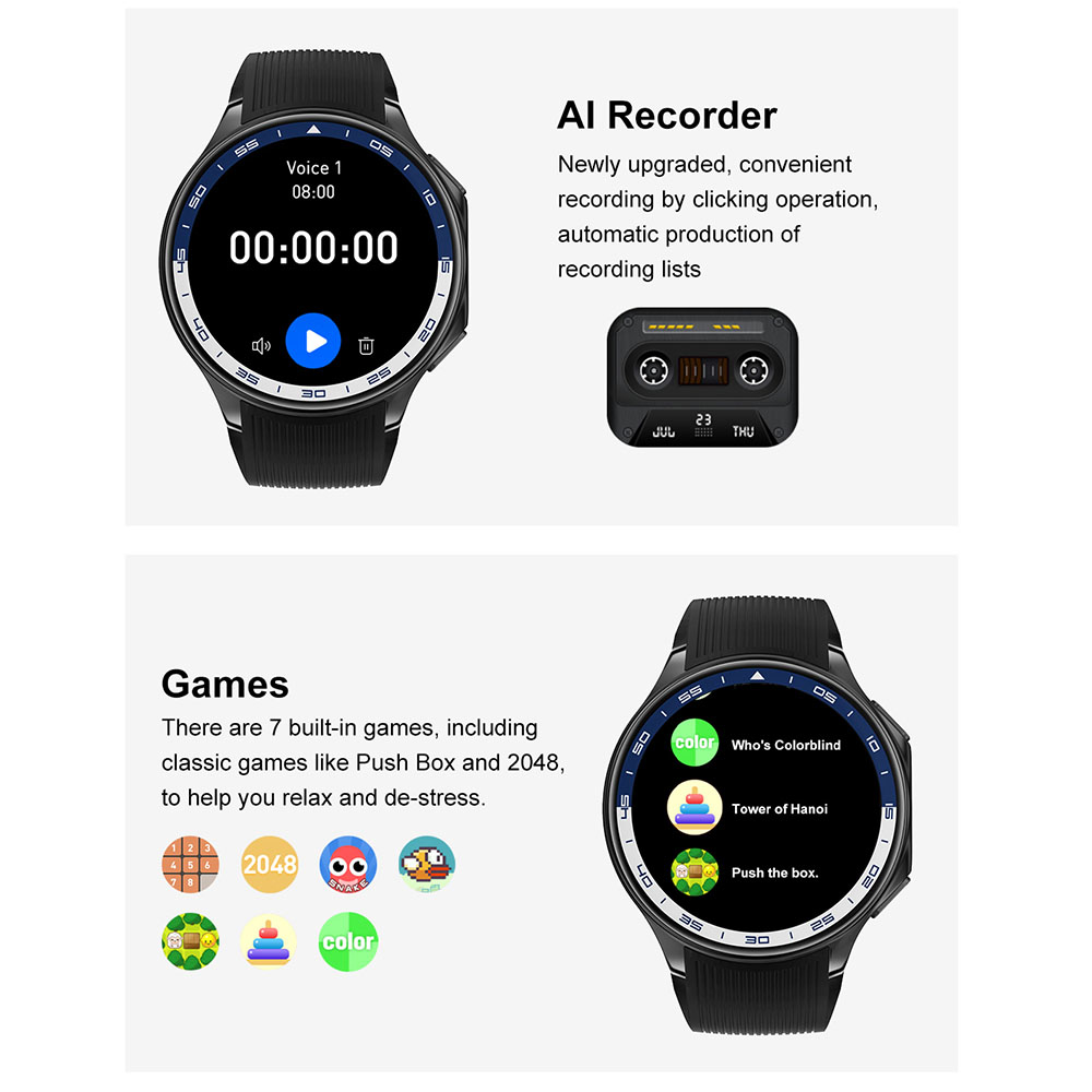 22. Funkcije: Sportski režimi rada, praćenje rada srca, praćenje sna, vremenska prognoza, merenje zasićenosti krvi kiseonikom (SpO2), upravljanje muzikom, vežbe disanja, kontakti, poruke, kalkulator, igre, alarm, štoperica, tajmer, lampa, opcija pronalaska telefona (kada je telefon povezan), upravljanje kamerom, 9 stilova menija, podešavanje osvetljenja, podsetnici, 3D meni, galerija, TWS povezivanje, video plejer
