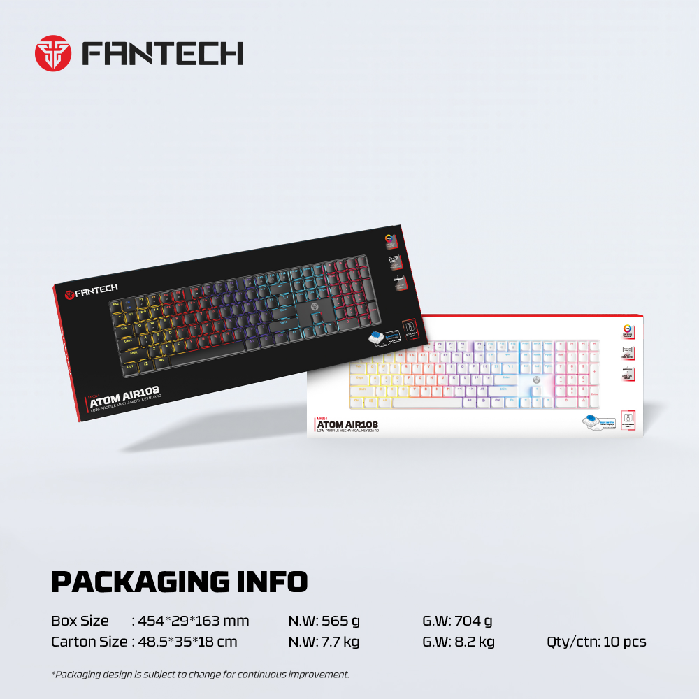 Tastatura Mehanicka Gaming Fantech MK314 RGB Atom AIR 108 bela (red switch)