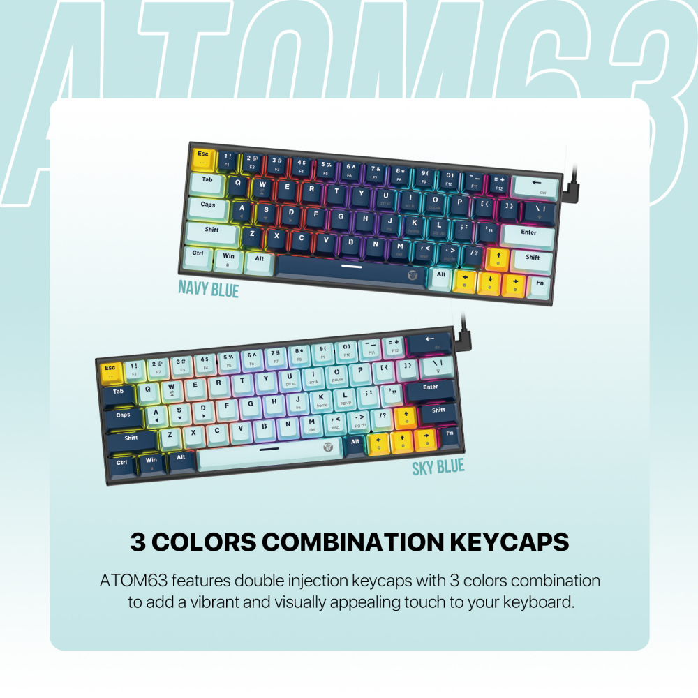 Tastatura Mehanicka Gaming Fantech MK874V2 RGB Atom 63 Mizu Navy (rosie switch)