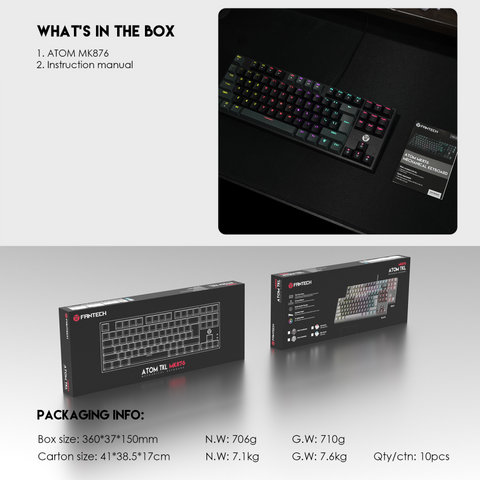 Tastatura Mehanicka Gaming Fantech MK876 RGB Atom TKL crna (Red switch)