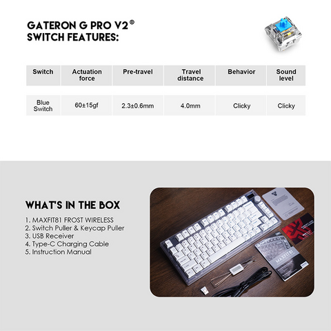 Tastatura Mehanicka Gaming Fantech MK910 RGB PBT Maxfit81 Frost Wireless crna (blue switch)