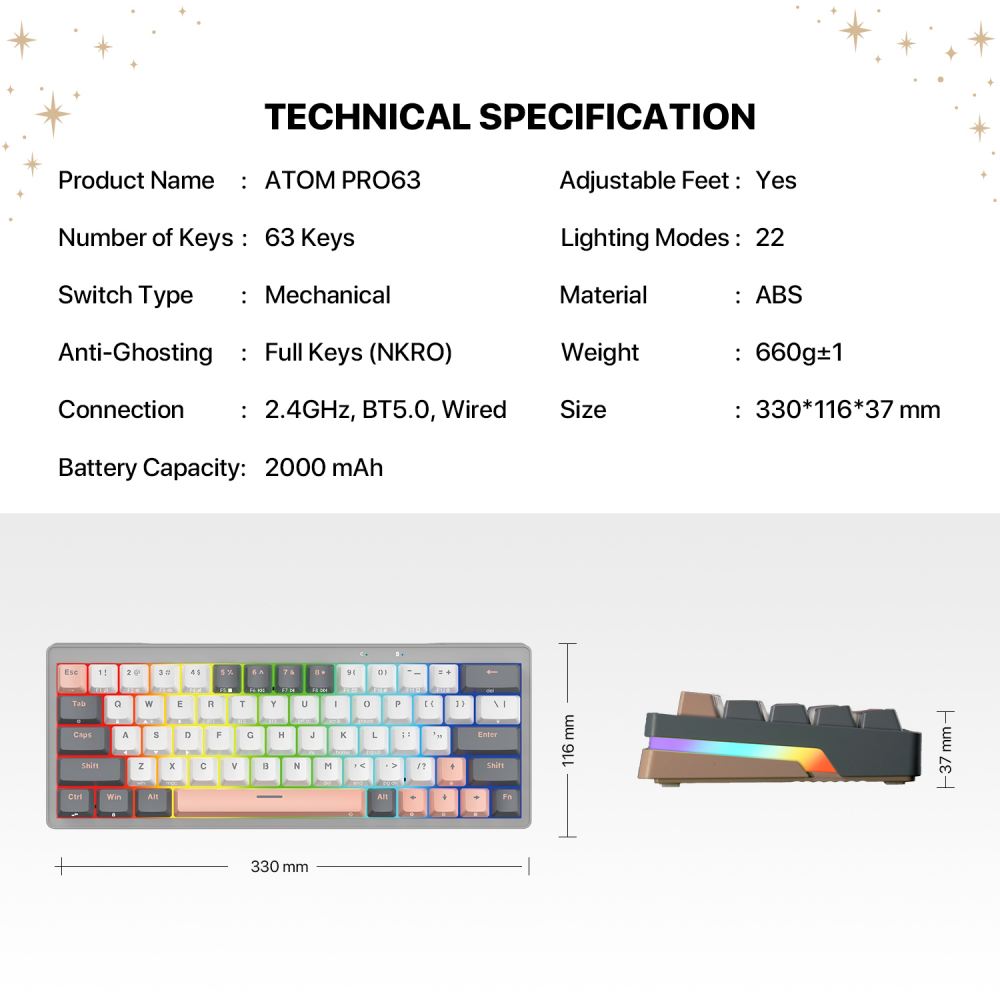 Tastatura Mehanicka Gaming Fantech MK912 RGB Atom PRO63 Wireless Saturn (blue switch)