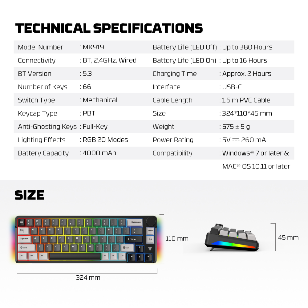 Tastatura Mehanicka Gaming Fantech MK919 Atom PRO66 siva (Blue switch)