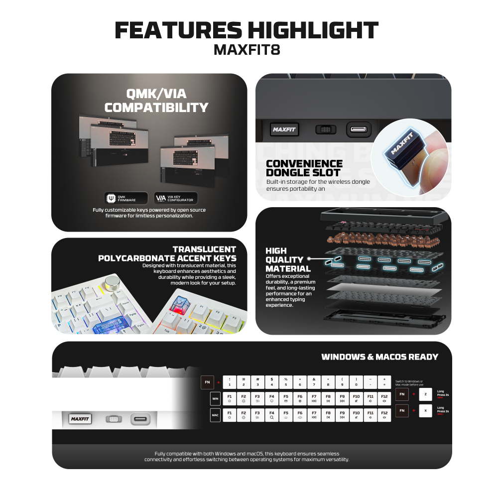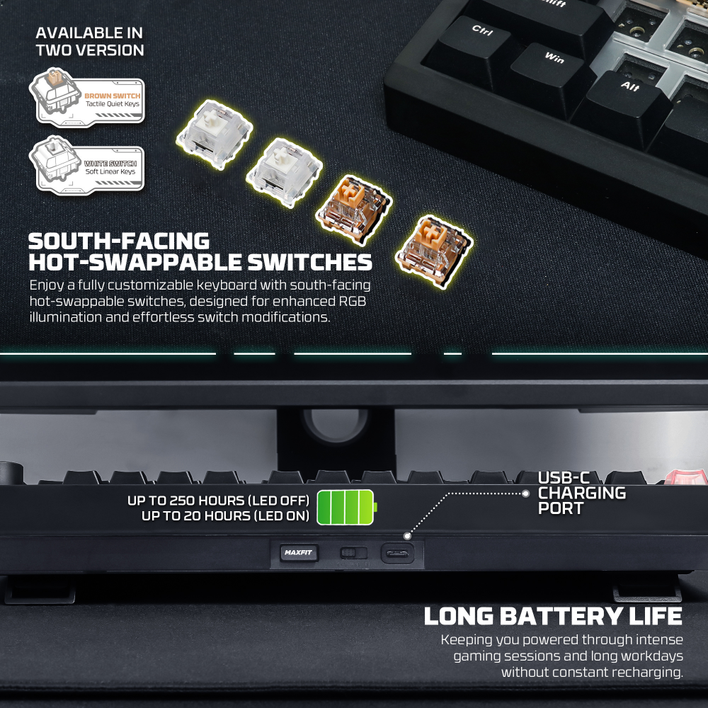 Tastatura Mehanicka Gaming Fantech MK921 Maxfit 8 Wireless beli (white) white switch