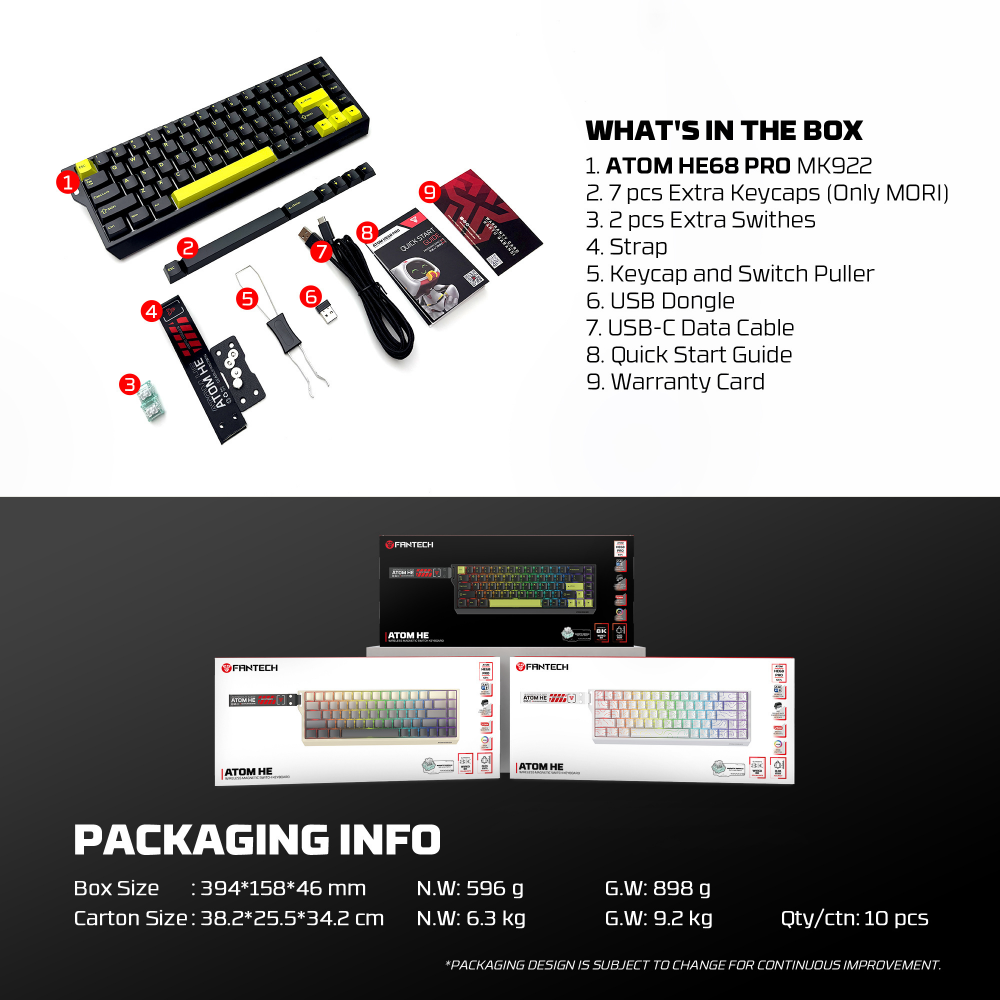 Tastatura Wired Magnetic Gaming Fantech MK922 Atom HE68 Pro Mori crna (emerald switch)