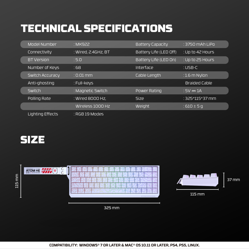 Tastatura Wired Magnetic Gaming Fantech MK922 Atom HE68 Pro Topo bela (emerald switch)