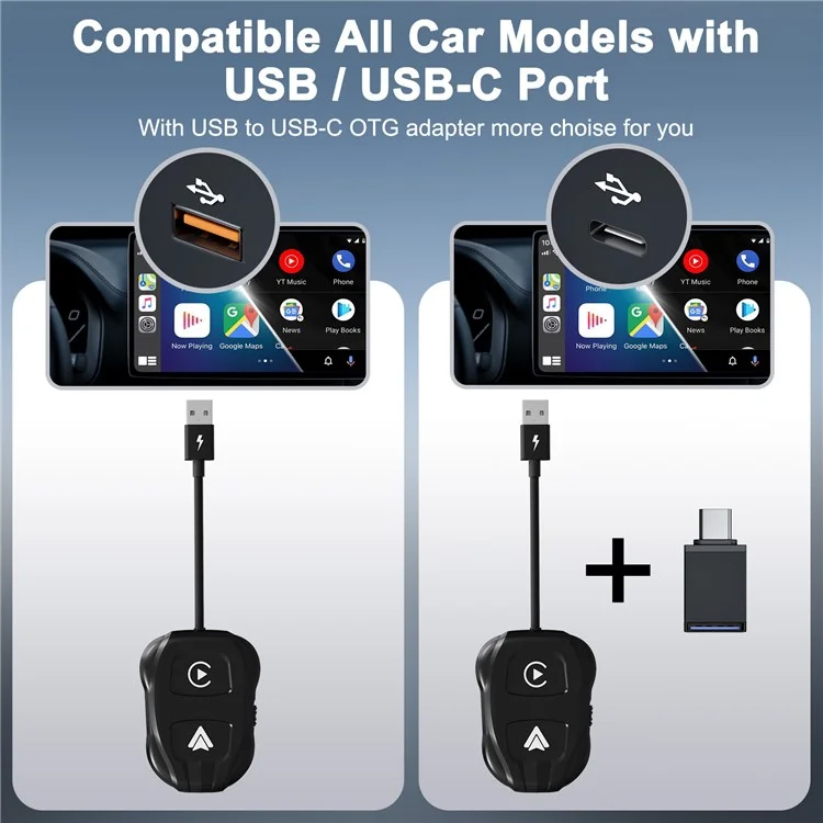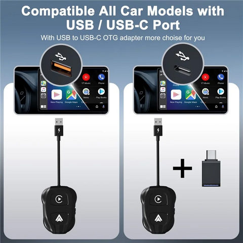 TechAdro Carplay Wireless Adapter - auto Andorid 2 u 1 USB, Type C crni