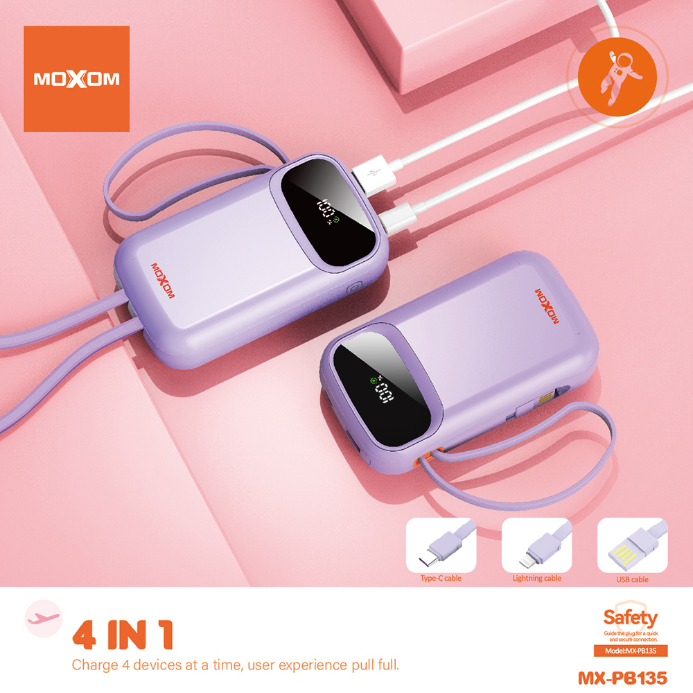 Univerzalna Back Up Baterija Moxom MX-PB135 fast 20000mAh QC22.5W+ PD20W 2.4A ljubicasti (MS)