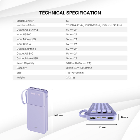 Univerzalna Back Up Baterija Prenosiva baterija Fantech S3 10000mAh, 10W beli