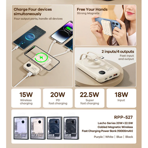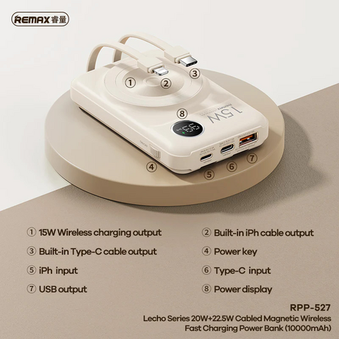 Univerzalna Back Up Baterija prenosiva baterija Magsafe REMAX Lecho Series RPP-527 PD 20W + QC 22.5W Fast Charging 10000mAh beli