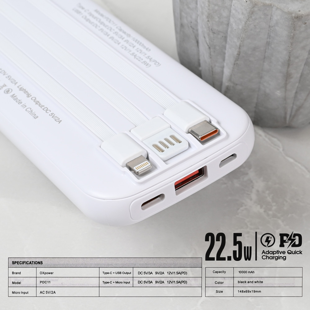 Univerzalna Back Up Baterija prenosiva baterija Oxpower PDC11 10000mAh bela