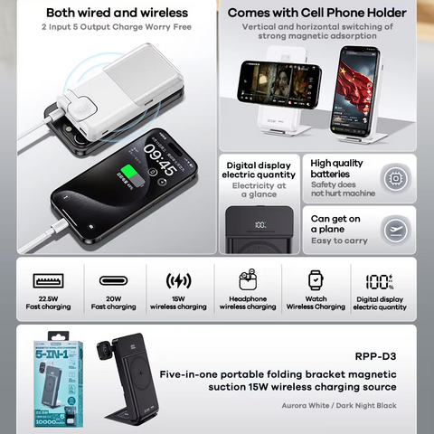 Univerzalna Back Up Baterija prenosiva baterija REMAX RPP-D3 20W+22.5W Fast Charging 10000mAh Magnetic 5u1 crni