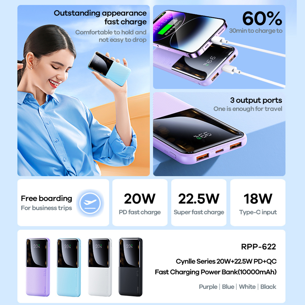 Univerzalna Back Up Baterija REMAX PD 20W+QC 22.5W fast RPP-622 10000mAh beli (MS)