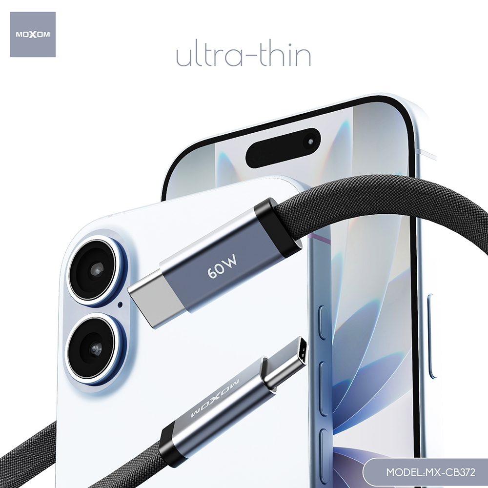 USB data kabl MOXOM MX-CB372 pleteni Fast 60W 3A Type-C na Type-C 1m beli (MS)