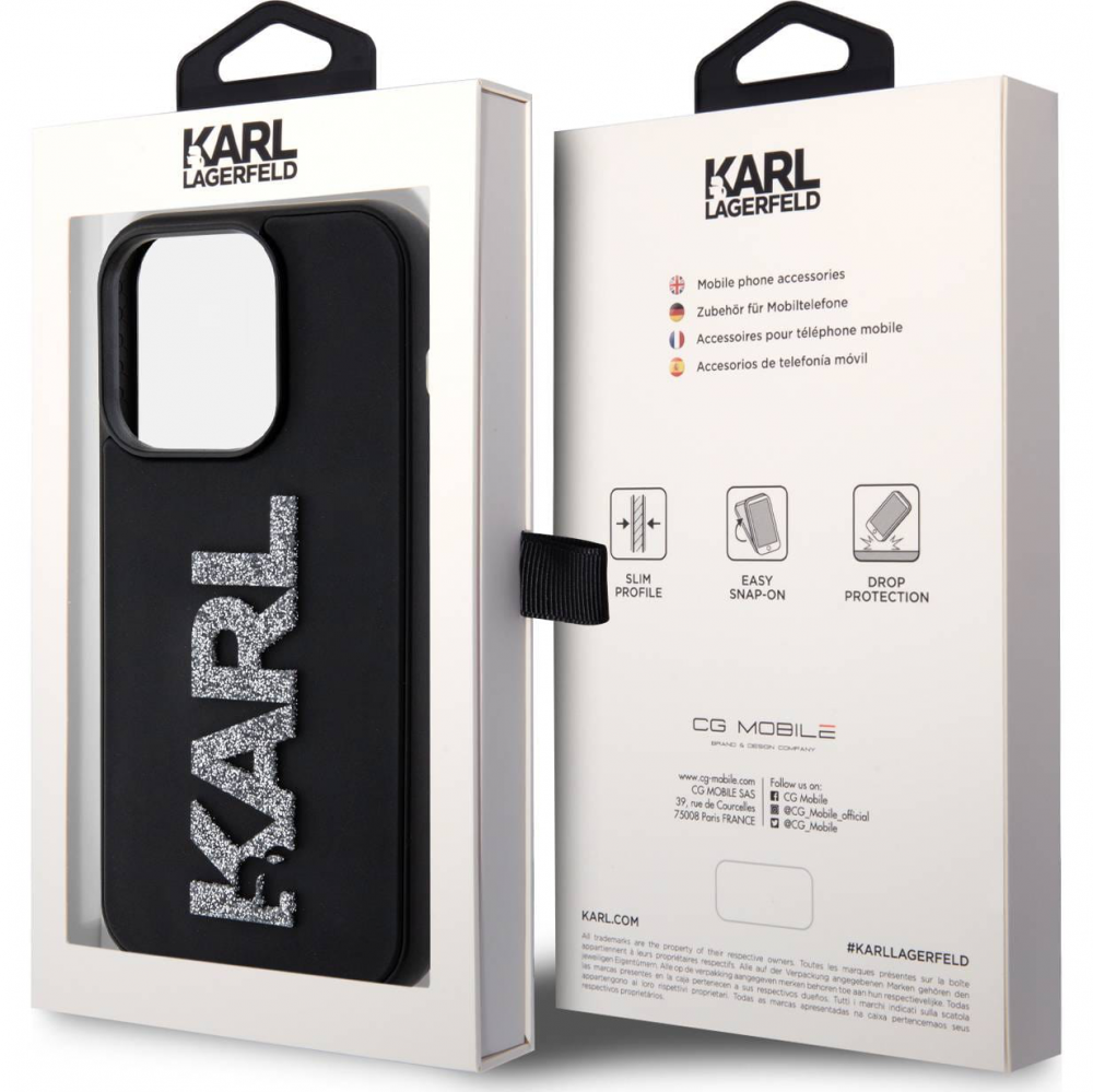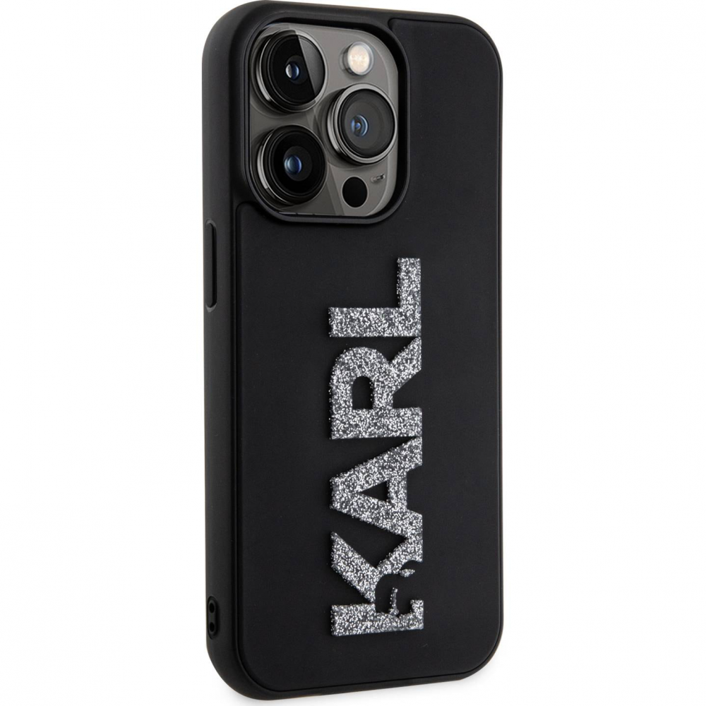 Zastitna maska (futrola) Karl Lagerfeld Hc 3D Logo Glitter - iPhone 15 Pro 6.1 crna (KLHCP15L3DMBKCK)