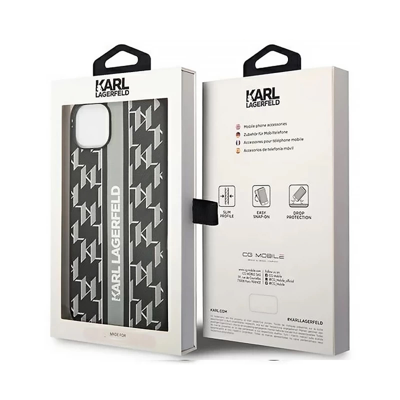 Zastitna maska (futrola) Karl Lagerfeld Hc Monogram stripe - iPhone 14 siva (KLHCP14SPGKLSKG)