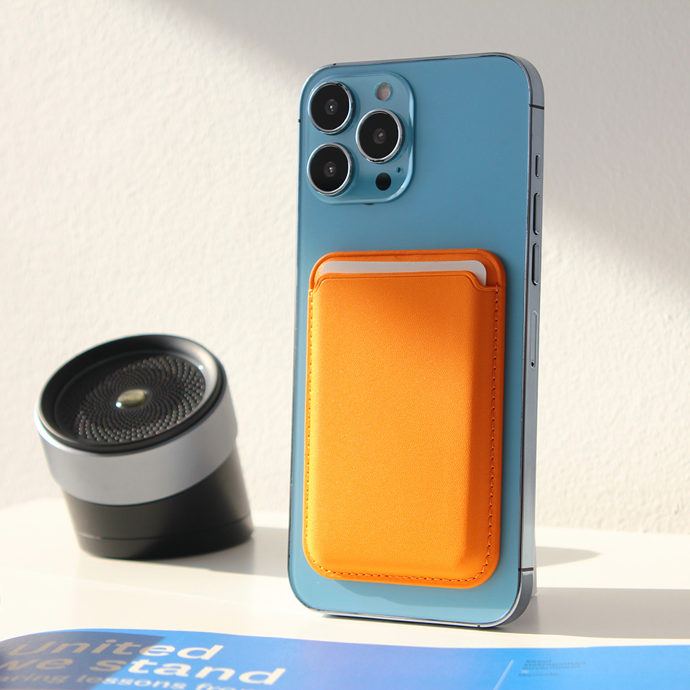 Zastitna maska (futrola) Leather Magsafe Pocket - iPhone 12 narandzasta